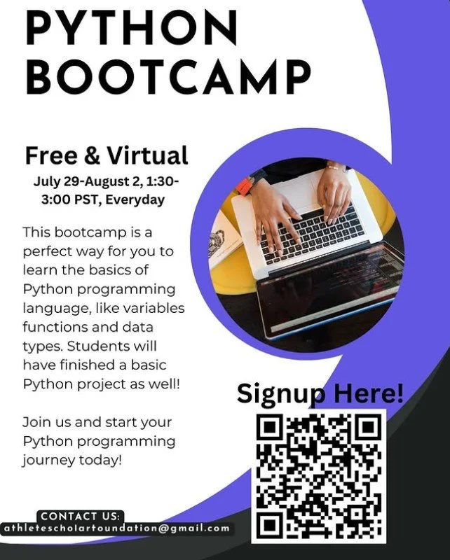 ASF hosted a Python bootcamp ( July 29-August 2 from 1:30-3:00pm PST EVERYDAY!) designed to teach young kids the fundamentals of Python programming, while also inspiring them to explore and develop a passion for STEM-related subjects.